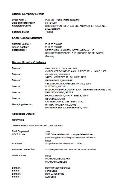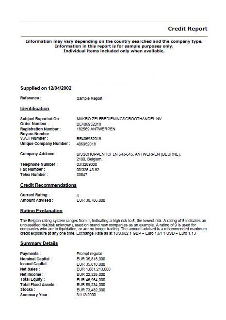 Our company reports, researched by trusted local agents, include a comprehensive set of business information and credit data: